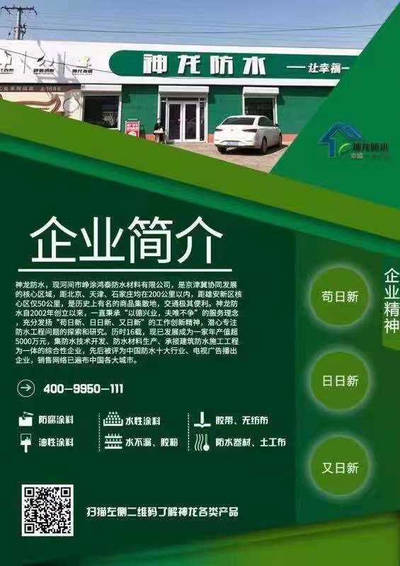 河间峥涂鸿泰防水材料有限公司主要生产丙纶布、涤纶布、沥青胶泥等各种防水材料、产品质量可靠、技术先进,专业贴心服务,值得信赖。
