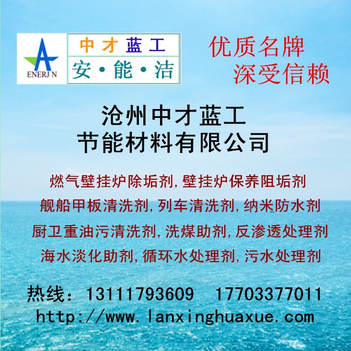 沧州中才蓝工节能材料有限公司13111793609  17703377011 中才蓝工安能洁AX-系列和AXNJ-系列: 净水絮凝剂,高效除磷剂,cod去除剂,新型碳源,设备清洗剂,水泥煅烧增效脱硫催化剂,火电厂锅炉脱硫脱硝剂,烟气脱硫脱硝剂,节煤除渣除焦剂,除污除垢剂,环保融雪剂,供暖臭味变色剂,壁挂炉系统清洗阻垢剂,锅炉除氧剂,啤酒瓶洗涤剂,燃气炉专用阻垢剂,缓蚀阻垢剂,杀菌灭藻剂,硅基防水剂等