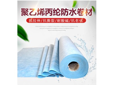 高分子聚乙烯丙(涤)纶防水卷材是采用聚乙烯、高强丙(涤)纶无纺布、紫外线隔光剂、抗老化剂等高分子原料,由自动化生产线一次性挤出成型加工制成。卷材中间层是防水层和防老化层,上下两面是增强粘结层,牢固、可靠、无翘边、无空鼓、双层防水,是一种新型的防水材料。