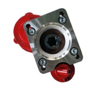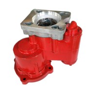 侧取力器系在变速箱侧取力窗口通过变速箱中间轴上的高挡齿或倒挡轴上的倒挡齿取力。在汽车取力器中使用最为广泛。 总体结构:有一轴式、两轴式、三轴式、带副箱式、单操纵双输出式和双操纵双输出式等几种形式。其中以两轴式结构最为普遍;一轴式结构最为简单;三轴式主要用于输出有双速异向用途的取力器,如越野车绞盘取力器;也有原为一轴式或两轴式后为改变输出轴旋向而增加一轴新成为两轴式或三轴式;带副箱式主要是在原取力器基础上进一步增速或减速,以扩展其使用性能;单操纵双输出式的两输出可同轴也可不同轴,但由同一操纵机构同时控制;双操纵双输出式的两输出可同轴也可不同轴,但由不同的操纵机构独立控制。