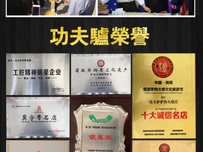功夫驴因其诚信经营、品牌塑造,以及传统非遗与创新创业的大胆融合,在地方构筑了良好的口碑效应和社会示范作用,曾荣获“冀字号名店”“十大诚信名店”“中国药膳大赛特级金奖”“十大驴肉名菜”“十大诚信单位”“河间市文明单位”。创始人荣获“全国创业之星”“沧州市创业之星”“河间市市长特别奖”“河间市十大新闻人物””“沧州市优秀青年标兵”“沧州市优秀青年志愿者”等多项重要荣誉。作为行业示范标杆企业和地方非遗名片代表企业,功夫驴吸引了各级媒体机构蜂拥而至,对公司及其“驴肉火烧”非遗产品进行了长期跟踪宣传报道,其中,央视一套焦点访谈,央视二套第一时间、央视七套和央视十二套多次以专题形式报道企业创始人以及企业事迹,各地地方卫视媒体报道次数不计其数。